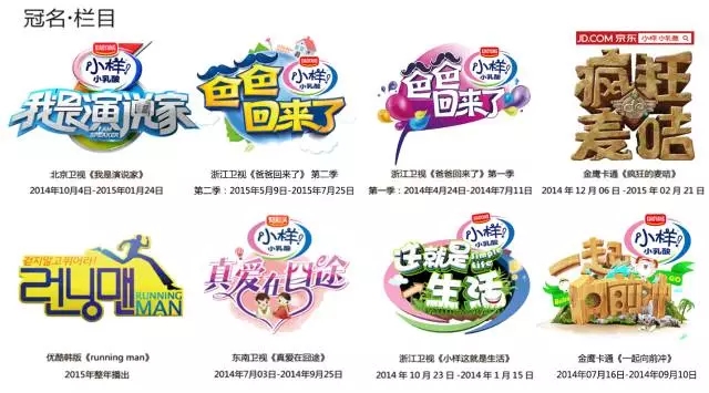 過去幾年,小樣小乳酸獨家冠名了《爸爸回來了》、《真愛在囧途》、《一起向前沖》、《我是演說家》、《小樣,這就是生活》等五檔大型綜藝節(jié)目。2015年,好彩頭與優(yōu)酷土豆合作拿下了韓版《Running Man》獨家網(wǎng)絡全年冠名權(quán),啟動互聯(lián)網(wǎng)營銷新模式;同年,以1.38億的巨額冠名費用繼續(xù)冠名浙江衛(wèi)視《爸爸回來了》第二季,同時加強互聯(lián)網(wǎng)布局,增加騰訊、愛奇藝等視頻網(wǎng)站品牌滲入。
